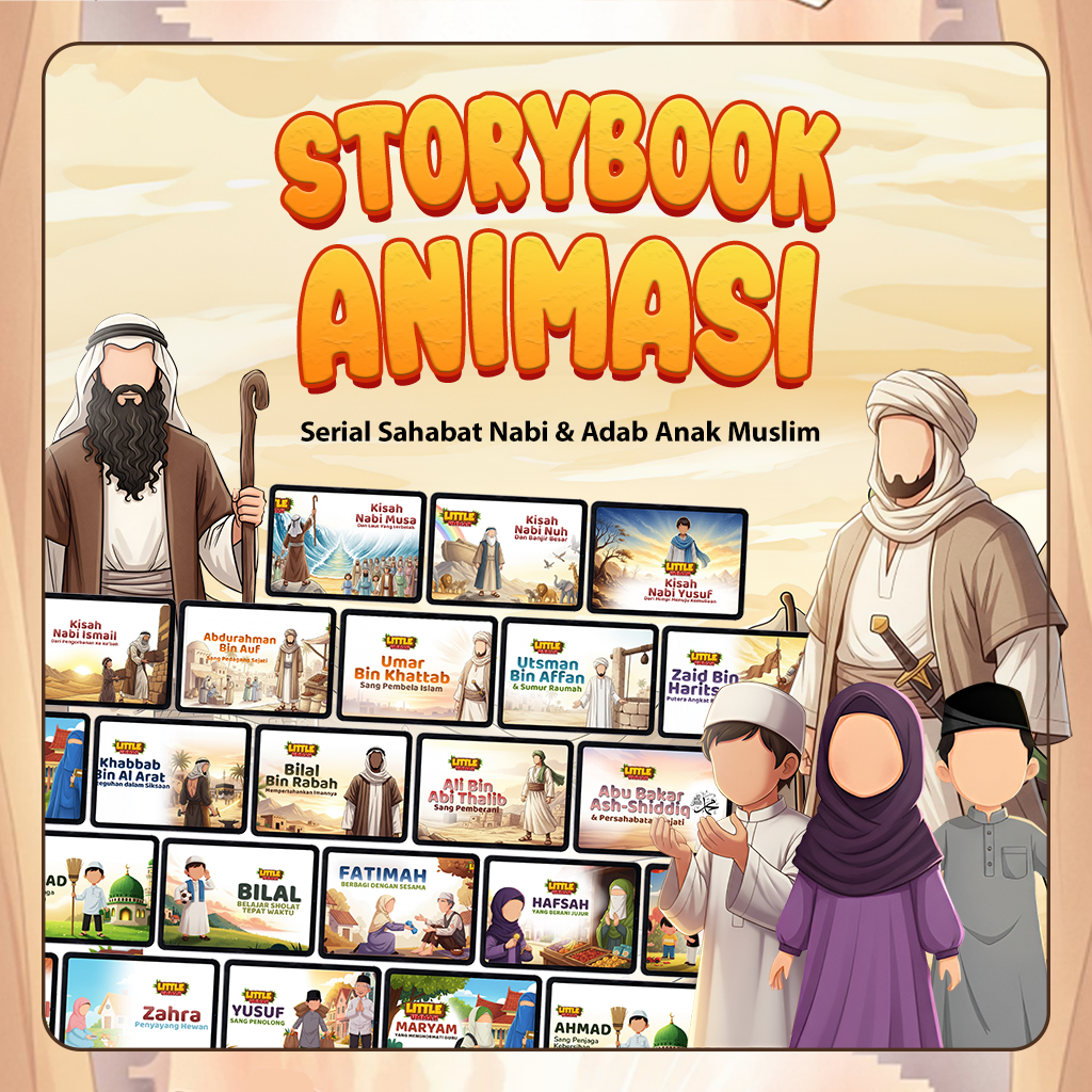 Storybook Islami interaktif yang membantu anak memahami nilai-nilai Islam seperti sabar, jujur, amanah, dan kasih sayang dengan cara yang seru dan mudah dipahami.